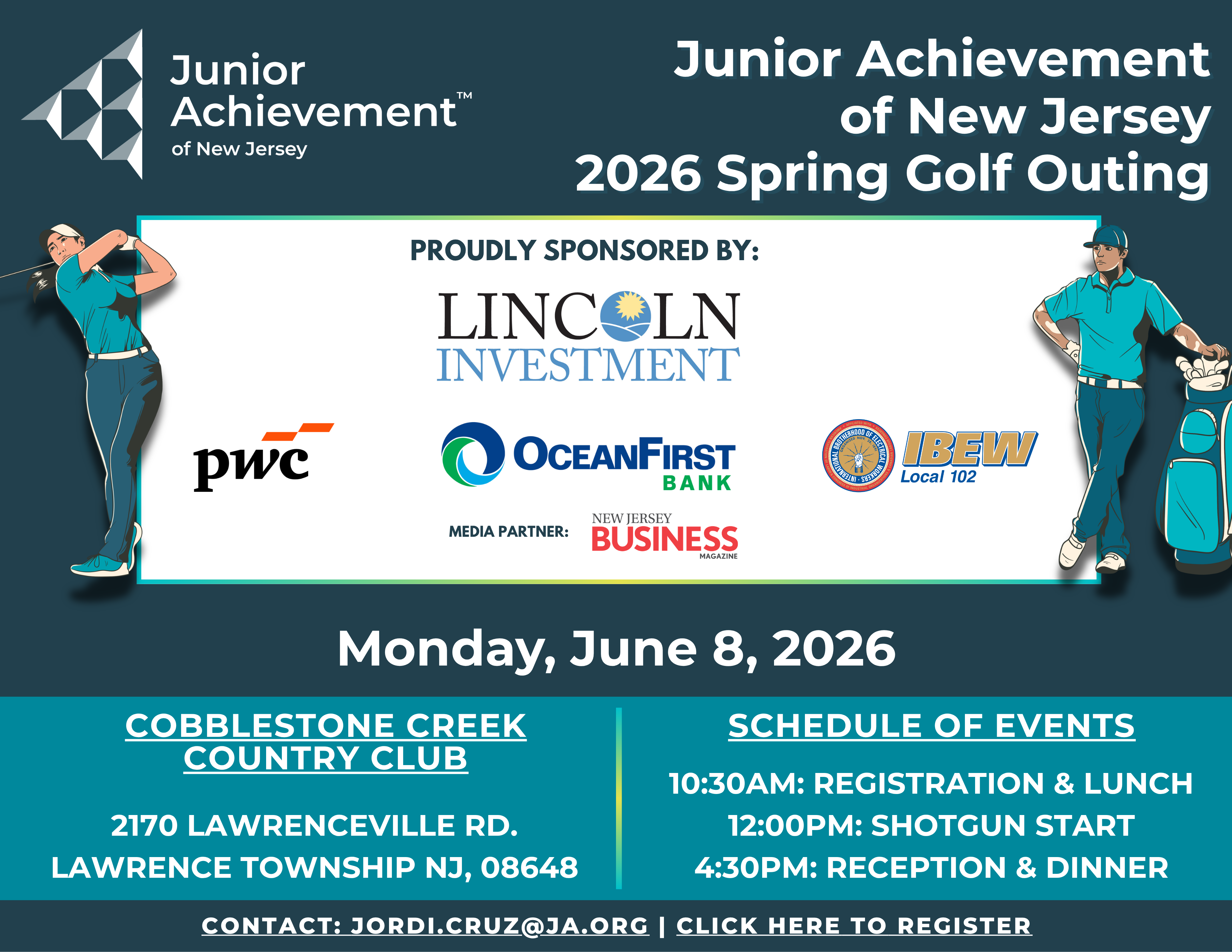 This year’s JA Spring Golf Outing features the return of LPGA Pro Anna Drahos, a fan favorite who placed 3rd in the World’s Long Drive competition. In partnership with Charity Golf Today, she will once again bring an exciting, competitive element to the course at Cobblestone Creek Country Club. Join us on the green and play fore a purpose—supporting JA’s mission to inspire and prepare New Jersey’s young people for success. ⛳️